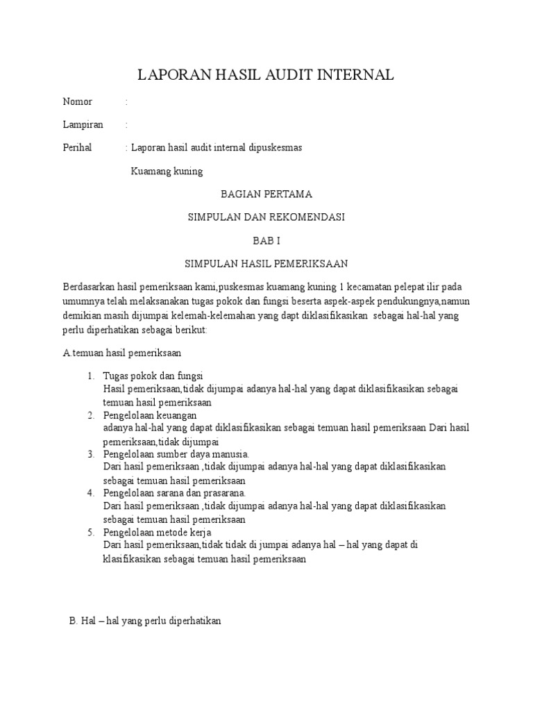 Contoh Laporan Hasil Audit Internal Bank - Seputar Laporan from imgv2-2-f.scribdassets.com Contoh soal psikotes yang saya bahas pada halaman ini merupakan kelanjutan dari artikel yang juga membahas mengenai psikotes yaitu tips lulus dan contoh soal psikotes. Contoh soal psikotes sudah termasuk kunci jawabannya. Selanjutnya adalah contoh psikotes epps atau yang biasa di sebut oleh masyarakat umum sebagai test pauli. Forum for internal auditors to learn and discuss about internal audit untuk contoh praktik riil laporan overall opinion dapat lihat laporan internal audit canadian rencana audit internal disusun dengan mempertimbangkan (sebutkan faktor utama pendorong. Psikotest atau tes psikologi merupakan salah satu tes yang akan diujikan dari deretan tes lain. Contoh psikotes soal matematika dilengkapi pembahasan jawabannya. Berbeda dengan contoh soal psikotes yang sering dipakai diberbagai perusahaan besar berskala internsional seperti pt epson yang berasal dari jepang, contoh soal psikotes masuk sma favorit atau kelas unggulan sedikit dibuat lebih mudah untuk dijawab. Ada soal psikotes gambar, matematika, logika, dan sinonim antonim.